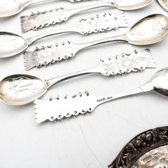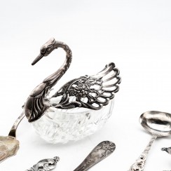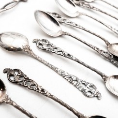 Информация о лоте 371527 - Небольшие чайные ложки (с кольцами), 6 шт, 80 гр, 830 пр, 11,3 см 317974 - Небольшие чайные ложки (с кольцами), 5 шт, 68 гр, 830 пр, 11,3 см 203866 - Серебряный половник для соусов. Норвегия 306462 - Серебряная сервировочная ложка. Норвегия 334842 - Сервировочная лопатка (с кольцами), 61 гр, 830 пр, 22 см 364540 - Серебряная сервировочная лопатка. Норвегия 347353 - Серебряная сервировочная лопатка. Финляндия, 1964 год 201443 - Щипцы для сахара, 11 гр, 830 пр, 7,2 см 311606 - Щипцы для сахара (с кольцами), 21 гр, 830 пр, 9,8 см 262696 - Серебряные щипцы для сахара. Норвегия 383527 - Обеденная ложка, 31 гр, 830 пр, лом 272171 - Небольшие чайные ложки, 6 шт, 63 гр, 830 пр, 11,5 см 397439 - Небольшие чайные ложки, 6 шт, 63 гр, 830 пр, 11,5 см 381455 - Серебряная сервировочная вилка. Норвегия 298542 - Сервировочная вилка, 21 гр, 813 пр, 17 см 358620 - Серебряная сервировочная вилка. Швеция, 1947 год 208385 - Чайная ложка, 13 гр, 830 пр, 12 см 231662 - Кофейная ложка, 8 гр, 830 пр, 10 см |