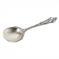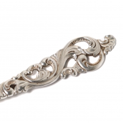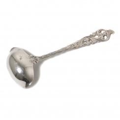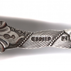 ![]() 203866 - Серебряный половник для соусов. НорвегияСеребряный половник для соусов.Дизайн "Двойное рококо" (Dobbel Rokokko). Норвегия, г. Берген, середина 20 века, мастерская Brodrene Lohne (основана в 1921 году). Номер модели: 477 Ввезена в Швецию. Государственное пробирное клеймо Швеции для ввезенных серебряных изделий. Длина: 14 см. Вес: 29 граммов серебра 830 пробы. ============================== Silver ladle for sauces. Pattern "Dobbel Rokokko". Norway, Bergen, mid-20th century, workshop Brodrene Lohne (founded in 1921). Model: 477 Was imported to Sweden. Length: 14 cm. Weight: 29 grams of silver 830 fineness. ![]() 306462 - Серебряная сервировочная ложка. НорвегияСеребряная сервировочная ложка.Дизайн "Двойное рококо" (Dobbel Rokokko). Норвегия, г. Берген, середина 20 века, мастерская Brodrene Lohne (основана в 1921 году). Номер модели: 128. Ввезена в Швецию. Государственное пробирное клеймо Швеции для ввезенных серебряных изделий. Длина: 13,2 см. Вес: 19 граммов серебра 830 пробы. ============================== Silver serving spoon. Pattern "Dobbel Rokokko". Norway, Bergen, mid-20th century, workshop Brodrene Lohne (founded in 1921). Model: 128. Was imported to Sweden. Length: 13.2 cm. Weight: 19 grams of silver 830 fineness. ![]() 364540 - Серебряная сервировочная лопатка. НорвегияСеребряная сервировочная лопатка.Дизайн "Двойное рококо" (Dobbel Rokokko). Норвегия, г. Берген, середина 20 века, мастерская Brodrene Lohne (основана в 1921 году). Номер модели: 479 Ввезена в Швецию. Государственное пробирное клеймо Швеции для ввезенных серебряных изделий. Длина: 21 см. Вес: 43 грамма серебра 830 пробы. ============================== Silver cake pie server (spatula). Pattern "Dobbel Rokokko". Norway, Bergen, mid 20th century, workshop Brodrene Lohne (founded in 1921). Model: 479 Was imported to Sweden. Length: 21 cm. Weight: 43 grams of silver 830 fineness ![]() 347353 - Серебряная сервировочная лопатка. Финляндия, 1964 годСеребряная сервировочная лопатка.Дизайн "Хильдесхаймская роза (Rose of Hildesheim)". Финляндия, г. Турку, 1964 год, мастерская Auran Kultaseppa (годы работы: 1937-1995). Длина: 18.5 см. Вес: 28 граммов серебра 813 пробы. С гравировкой. За дополнительную плату гравировка может быть удалена. ================================= Silver serving cake pie server (spatula). Pattern "Rose of Hildesheim". Finland, Turku, year 1964, workshop Auran Kultaseppa (worked since 1937 to 1995). Length: 18.5 cm. Weight: 28 grams of silver 813 fineness. There is engraving. ![]() 262696 - Серебряные щипцы для сахара. НорвегияСеребряные щипцы для сахара.Дизайн "Двойное рококо" (Dobbel Rokokko). Норвегия, г. Берген, середина 20 века, мастерская Brodrene Lohne (основана в 1921 году). Ввезена в Швецию. Государственное пробирное клеймо Швеции для ввезенных серебряных изделий. Длина: 9 см. Вес: 16 граммов серебра 830 пробы. ============================== Silver sugar tongs. Pattern "Dobbel Rokokko". Norway, Bergen, mid-20th century, workshop Brodrene Lohne (founded in 1921). Was imported to Sweden. Length: 9 cm. Weight: 16 grams of silver 830 fineness. ![]() 381455 - Серебряная сервировочная вилка. НорвегияСеребряная сервировочная вилка (для лимона).Дизайн "Двойное рококо" (Dobbel Rokokko). Норвегия, г. Берген, мастерская Brodrene Lohne (основана в 1921 году). Номер модели: 492. Ввезена в Швецию. Государственное пробирное клеймо Швеции для ввезенных серебряных изделий. Длина: 13,5 см. Вес: 17 граммов серебра 830 пробы. ============================== Silver serving (olive or lemon) fork. Pattern "Dobbel Rokokko". Norway, Bergen, workshop Brodrene Lohne (founded in 1921). Model: 492. Was imported to Sweden. Length: 13.5 cm. Weight: 17 grams of silver 830 fineness. ![]() 358620 - Серебряная сервировочная вилка. Швеция, 1947 годСеребряная сервировочная вилка для лимона.Дизайн "Хильдесхаймская роза" (Rose of Hildesheim). Швеция, г. Онге, 1947 год, мастерская Ånge Guldsmedsaffär Brita Lindgre (годы работы: 1952-1994). Длина: 14,5 см. Вес: 19 граммов серебра 830 пробы. ================================ Silver serving (olive or lemon) fork. Pattern "Rose of Hildesheim". Sweden, Ånge, year 1947, workshop Ånge Guldsmedsaffär Brita Lindgre (worked since 1952 to 1994). Length: 14.5 cm. Weight: 19 grams of silver 830 fineness. ![]() |