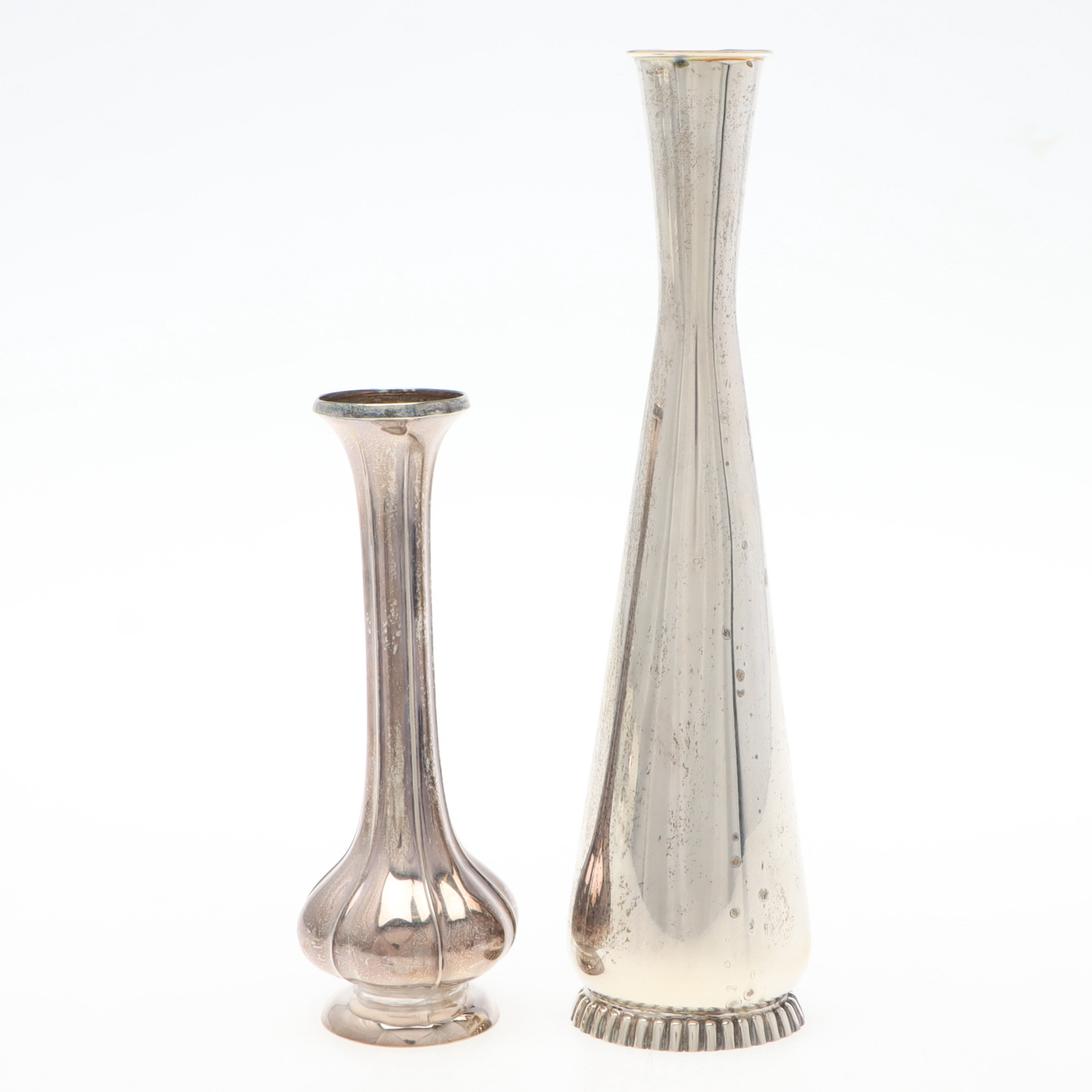 - Серебряная ваза, высота 14,5 см, диаметр основания 4,2 см, диаметр гола 3,4 см, общий вес, включая посеребрённую вставку в основания, 59 гр