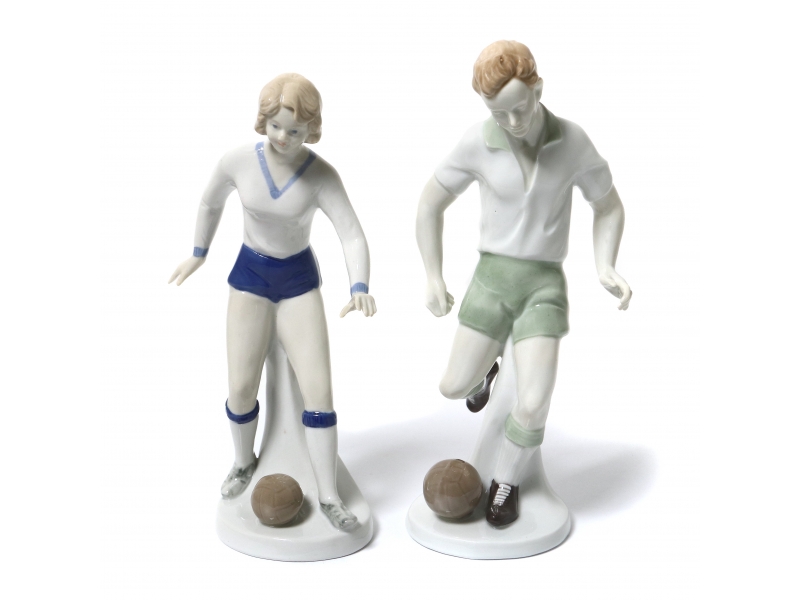 Без сколов, повреждений и без реставраций. =============================== Two porcelain figurines "Female soccer player" and "Football Player". Hand-painted underglaze.