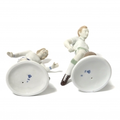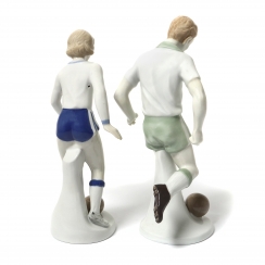 Soccer player, height: 22 cm, base size: 8.7 x 7.5 cm. Football Player, height: 23.5 cm, base diameter: 8 cm.