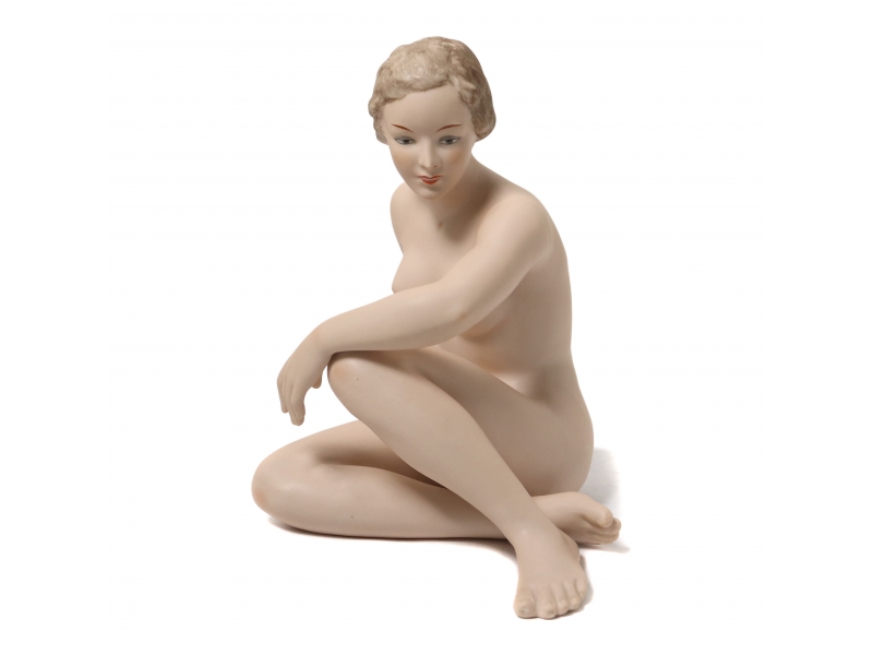 Фарфоровая фигура (статуэтка) "Обнаженная девушка". Ручная роспись.