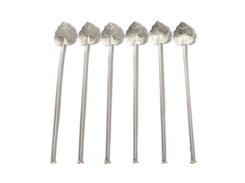 Серебряные ложки-трубочки для коктейлей, 6 шт.