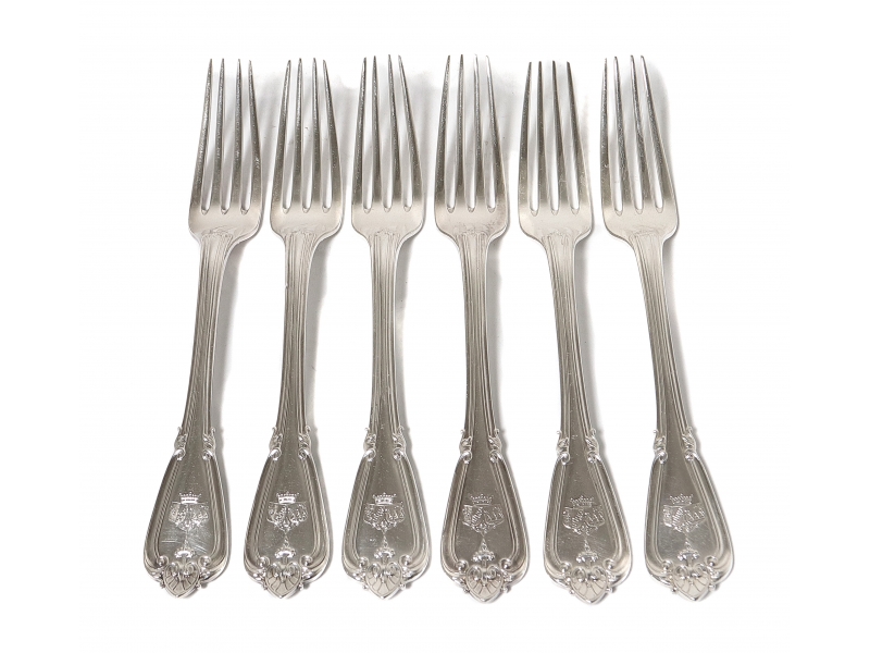 Большие массивные серебряные обеденные вилки, 6 шт. Дизайн "Greque" (Греческий).
