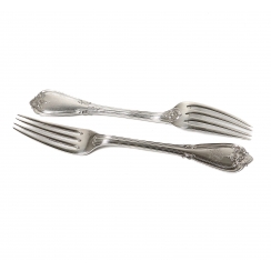Вилками пользовались, обратите внимание на состояние зубьев. За дополнительную плату могу привести к идеальному состоянию, но нужно ли? ========================= Massive silver dinner forks, 6 pcs. Pattern "Greque".