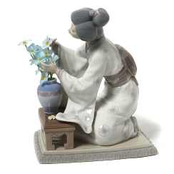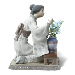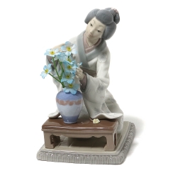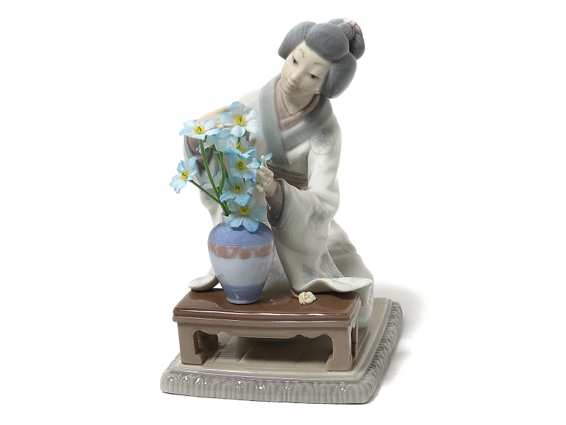 Оригинальный цветок в вазе заменен на искусственную цветущую веточку. ============================= Porcelain figurine "Japanese Girl Decorating". Hand-painted underglaze.