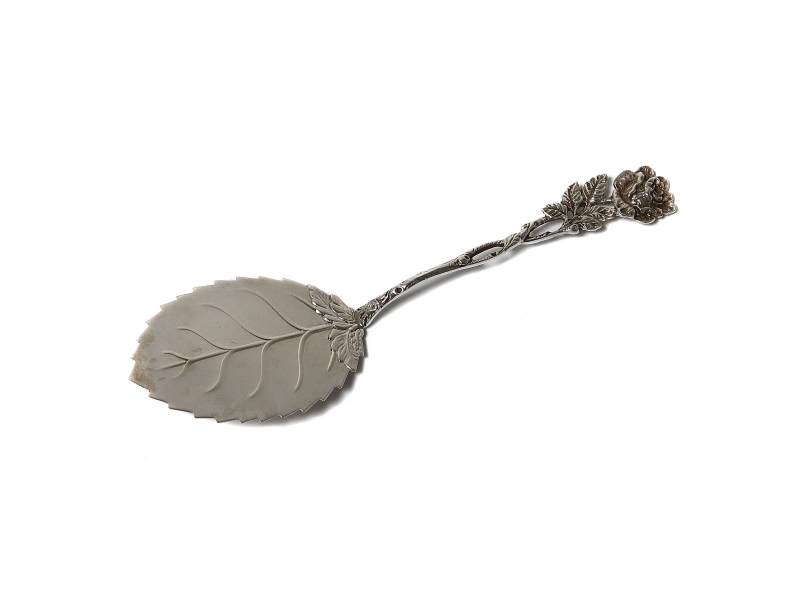 Серебряная сервировочная лопатка в виде листа. Дизайн "Хильдесхаймская роза" (Rose of Hildesheim).