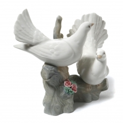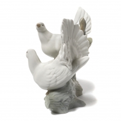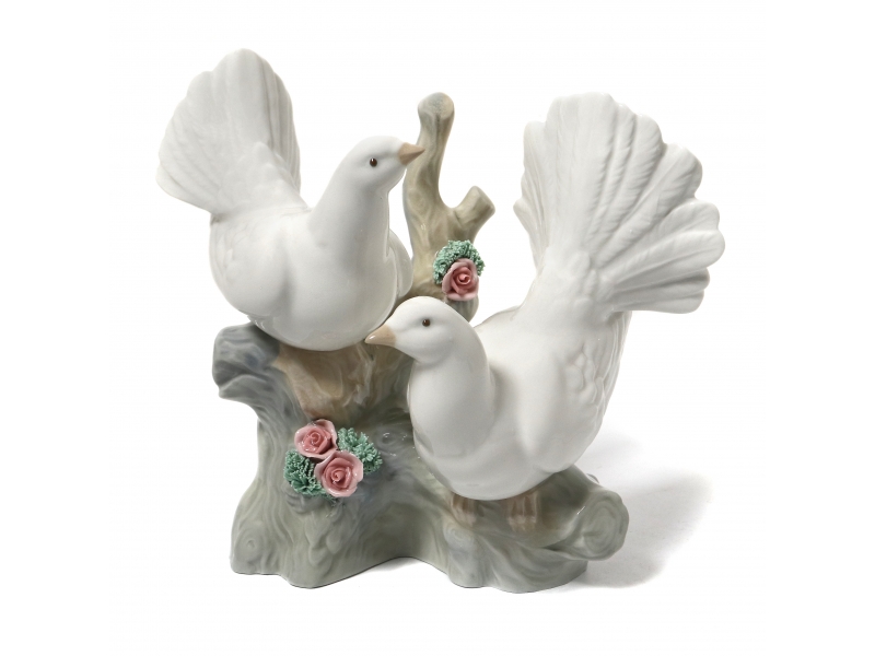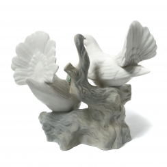 Фарфоровая фигура (статуэтка) "Пара голубей на ветке". Ручная подглазурная роспись.