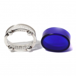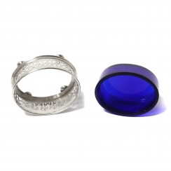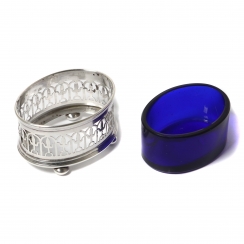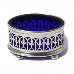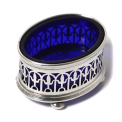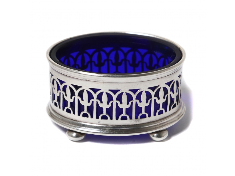 Серебряная прорезная солонка с кобальтовой вставкой.