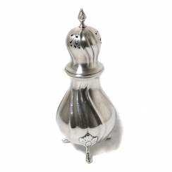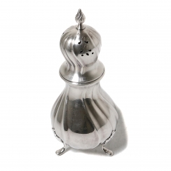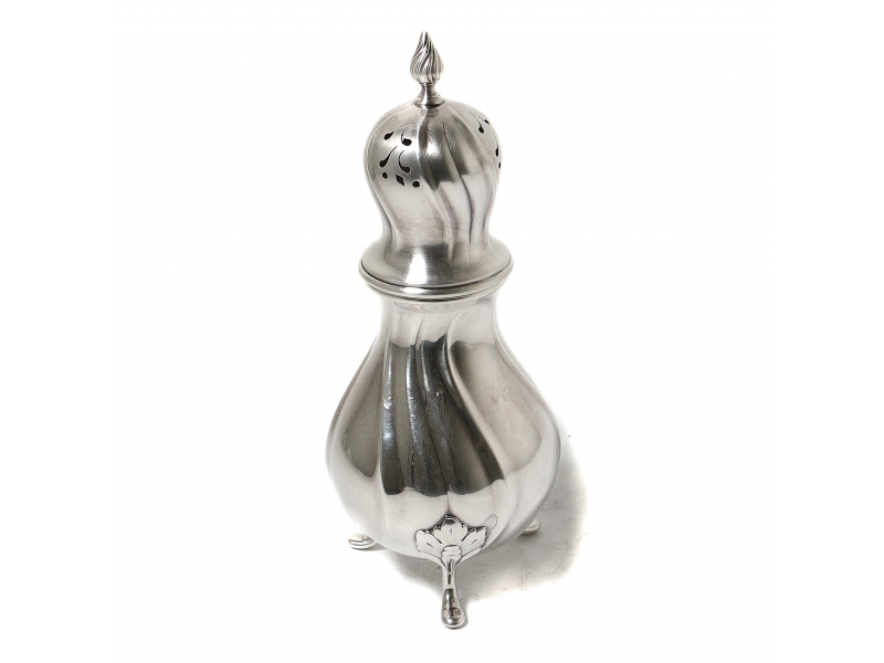 Максимальная высота: 20,5 см, диаметр верха горла: 4,8 см. Вес: 282 грамма серебра 830 пробы. =========================== Silver sugar shaker castor.