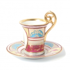 Без сколов, реставраций и повреждений. ============================ Porcelain coffee pair: cup with a half-length portrait of Napoleon Bonaparte and saucer. Hand painted, gold painted.