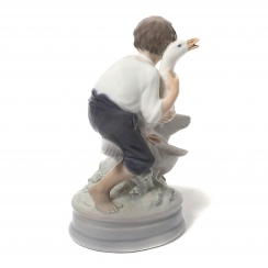 Статуэтка первого сорта. Без сколов, повреждений и без реставраций. ============================ Porcelain figurine "Goose-thief". Based on the Selma Lagerlof fairytale "The Wonderful Adventures of Nils". Hand-painted overglaze.