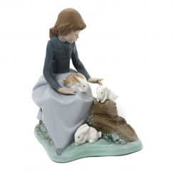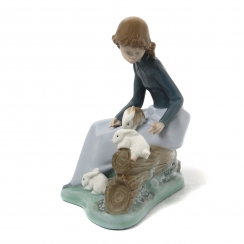 Фарфоровая фигура (статуэтка) "Девочка с кроликами". Ручная подглазурная роспись.