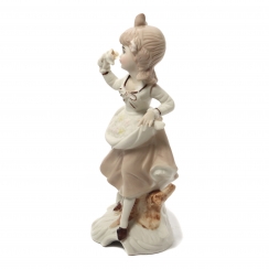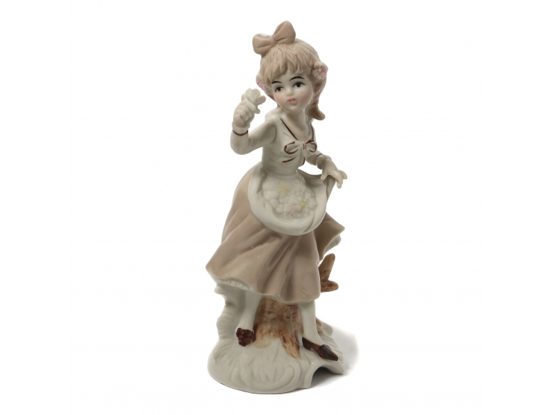 Фарфоровая фигура (статуэтка) "Девочка с цветком". Ручная роспись.