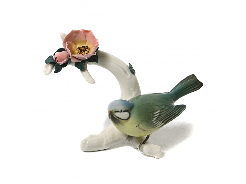 Фарфоровая фигура (статуэтка) "Синица на цветущей ветке". Ручная подглазурная роспись.