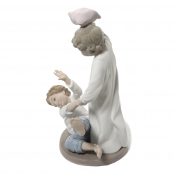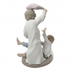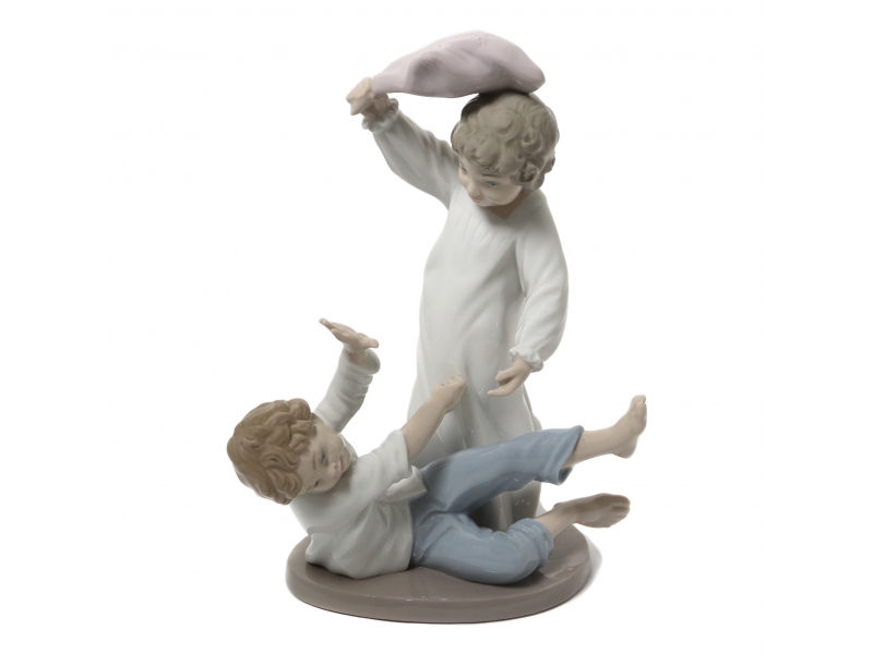 Фарфоровая фигура (статуэтка) "Бой подушками" (Играющие дети). Ручная подглазурная роспись.