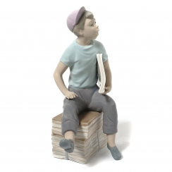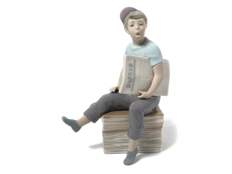Фарфоровая фигура (статуэтка) "Мальчик с газетой". Ручная подглазурная роспись.