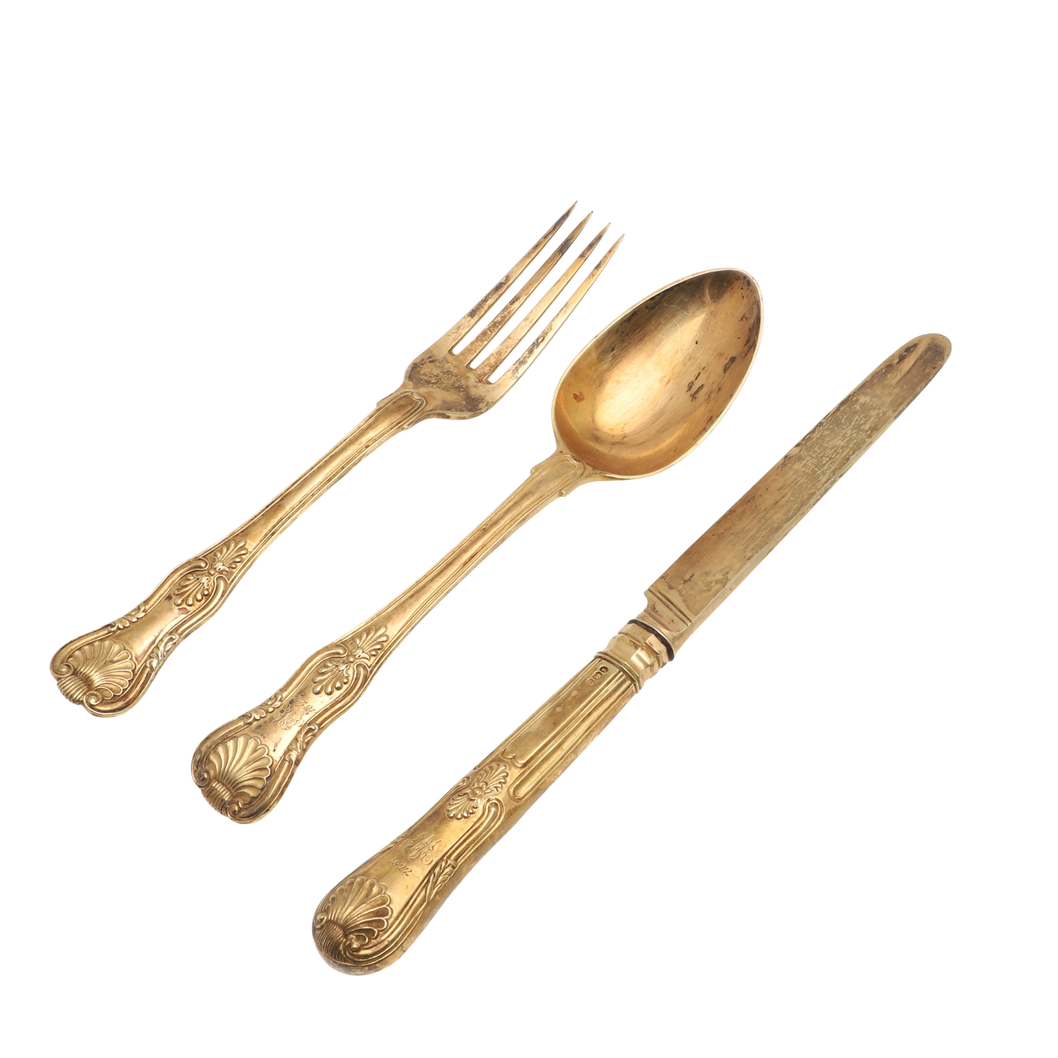 397269 - Набор небольших столовых приборов Эгоист из трех предметов: ложка, вилка, нож. Англия, 19 век. Общий вес приборов 193 гр, 925 пр
