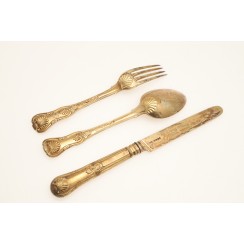 Набор небольших столовых приборов Эгоист из трех предметов: ложка, вилка, нож. Англия, 19 век. Общий вес приборов 193 гр, 925 пр