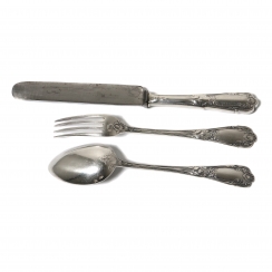 Набор небольших серебряных столовых приборов "Эгоист", 3 предмета.