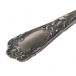 Общий вес цельно серебряных приборов: 104 граммаов серебра 84 золотниковой пробы ( = 875 метрической пробе). Общий вес ножа с серебряной ручкой и стальным лезвием: 64 грамма.