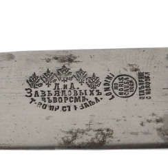 On the blades of the knives there is a stamp "T-in of the production of steel products L. and A. Zavyalov in Vorsmi".