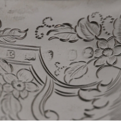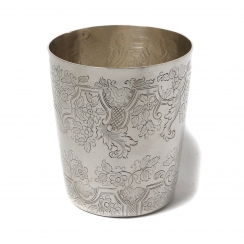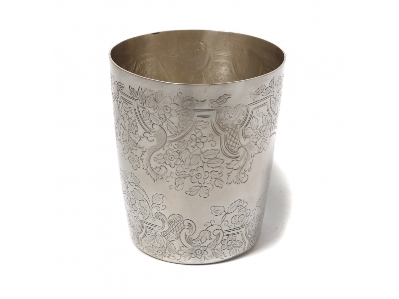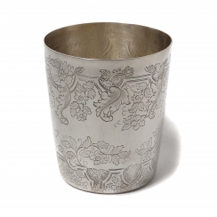 Серебряный стакан, декорированный цветочным и лиственным орнаментом.