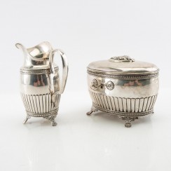 Максимальная высота сахарницы 11,5 см, длина 14,5 см, ширина 10,3 смВысота молочника по носик 14,5 см