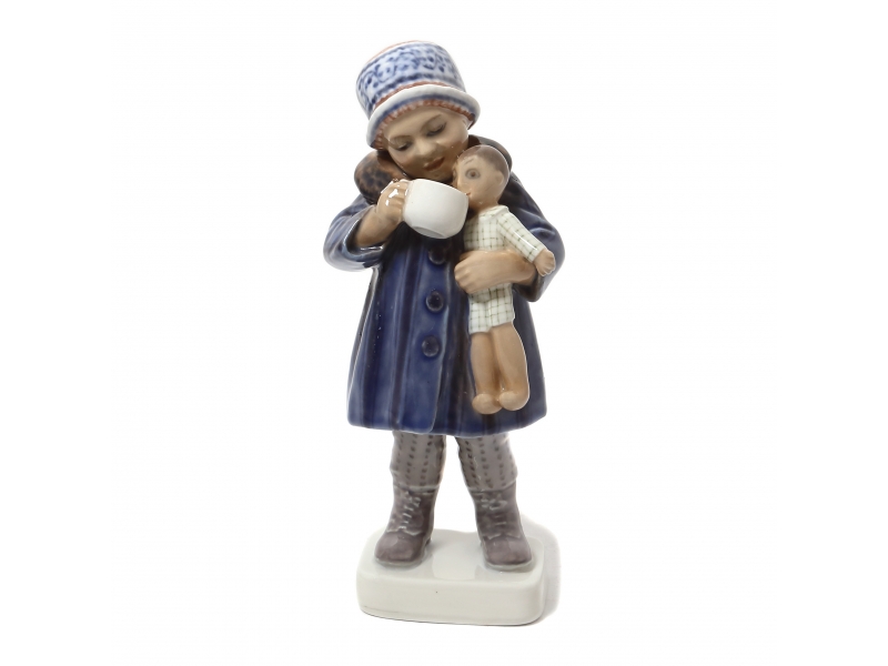Фарфоровая фигура (статуэтка) "Девочка, дающая пить кукле". Ручная подглазурная роспись.