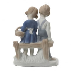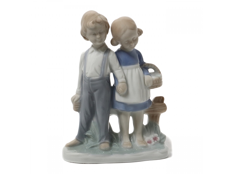 397887 - Мальчик и девочка с корзиной у плетня, высота 14,4 см, основание 10,5 х 5,5 см, Европа