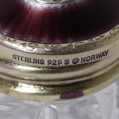Солонка. Стекло, серебро 925 пробы, фиолетовая эмаль по гильоше.