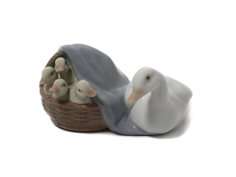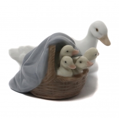 Фарфоровая фигура (статуэтка) "Утка с утятами в корзине". Ручная подглазурная роспись.