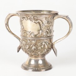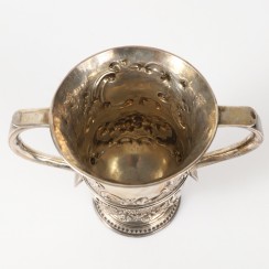 Кубок с двумя ручками, Англия, 18 век, 318 гр, 925 пр, высота 13,5 см, диаметр верха 10 см, диаметр основания 7,5 см
