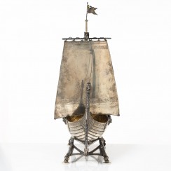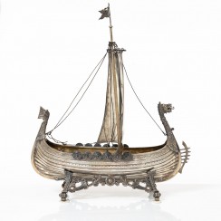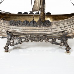 Серебряная модель кнорра на подставке, общий вес 1650 гр, серебро 830 пр