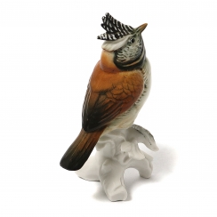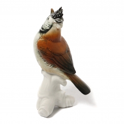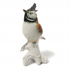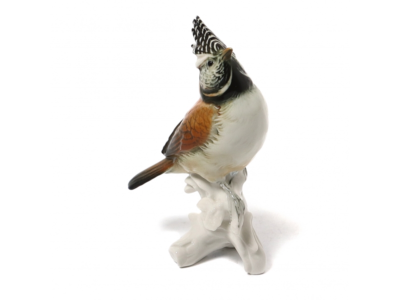 Фарфоровая фигура (статуэтка) "Хохлатая синица на ветке". Ручная подглазурная роспись.