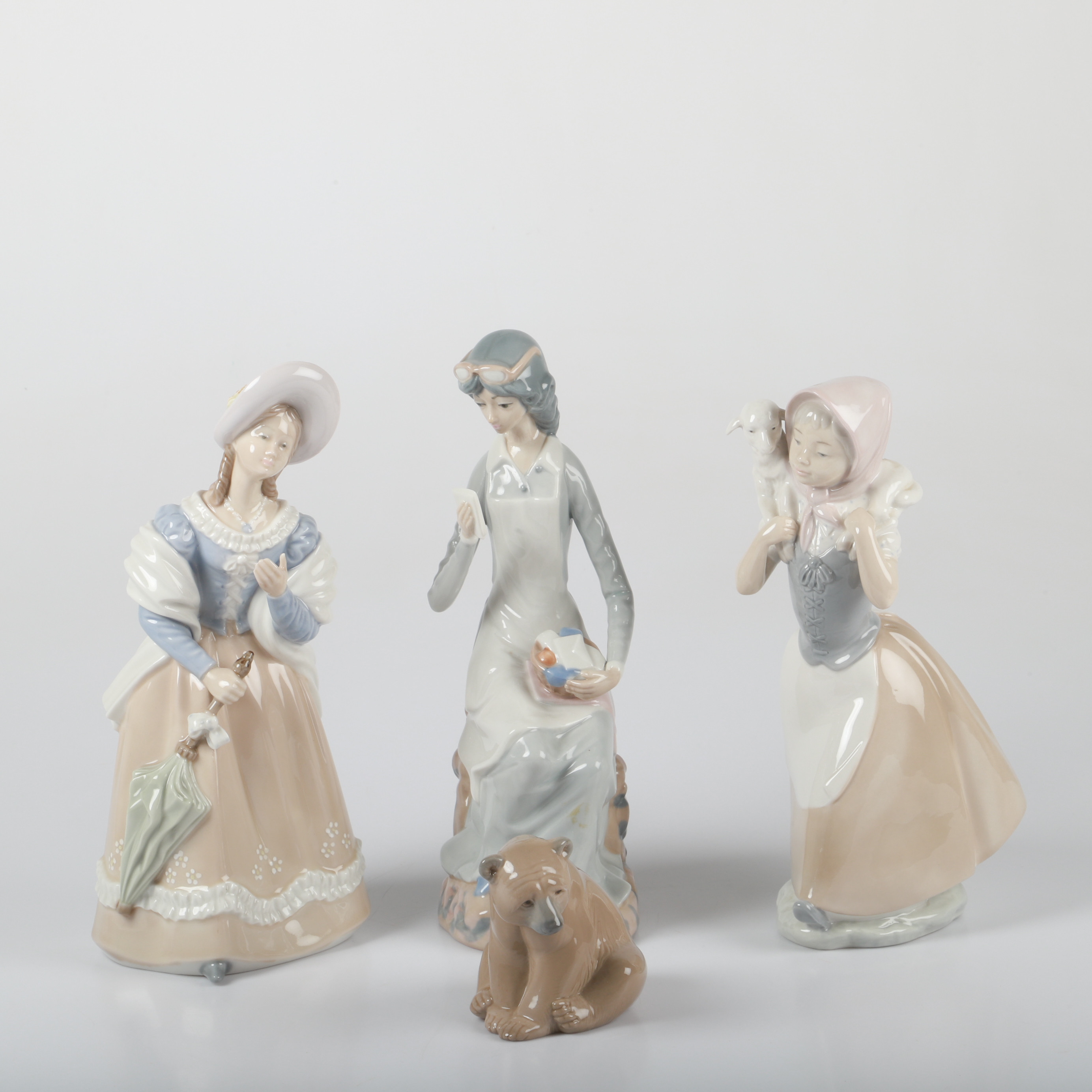 334303 - Девочка с ягненком, NLL_02000238 307678 - Девушка с зонтом, высота 27 см, длина 12,5 см, ширина 12,2 см, Испания, Zaphir 371249 - Девушка, читающая письмо, высота 27,5 см, основание 12,5 х 9,2 см, Испания, Casades 308461 - Медведь, LL_01001206