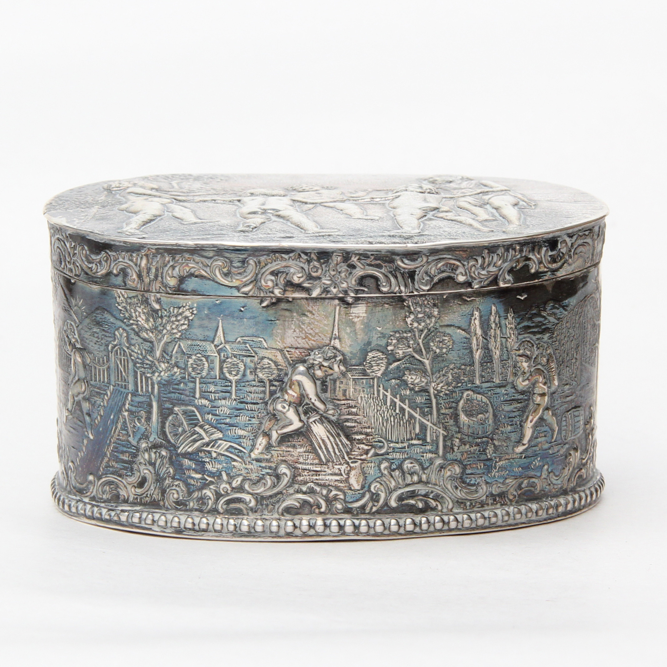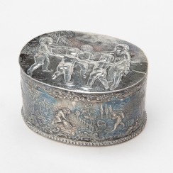 Серебряная банка (для чая), Германия, г. Ханау, 169 гр, не ниже 800 пр, длина 10,4 см, ширина 8,2 см, высота 5,7 см