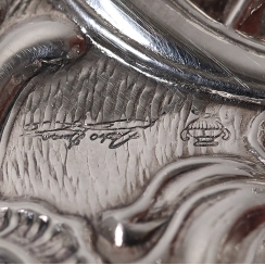 Серебряная ваза, декорирована рельефным растительным узором. Дизайнер Pedro Duran Morales (годы жизни: 1860-1938).