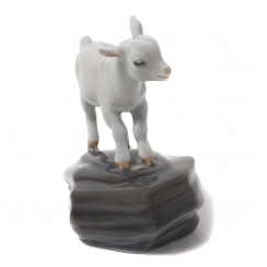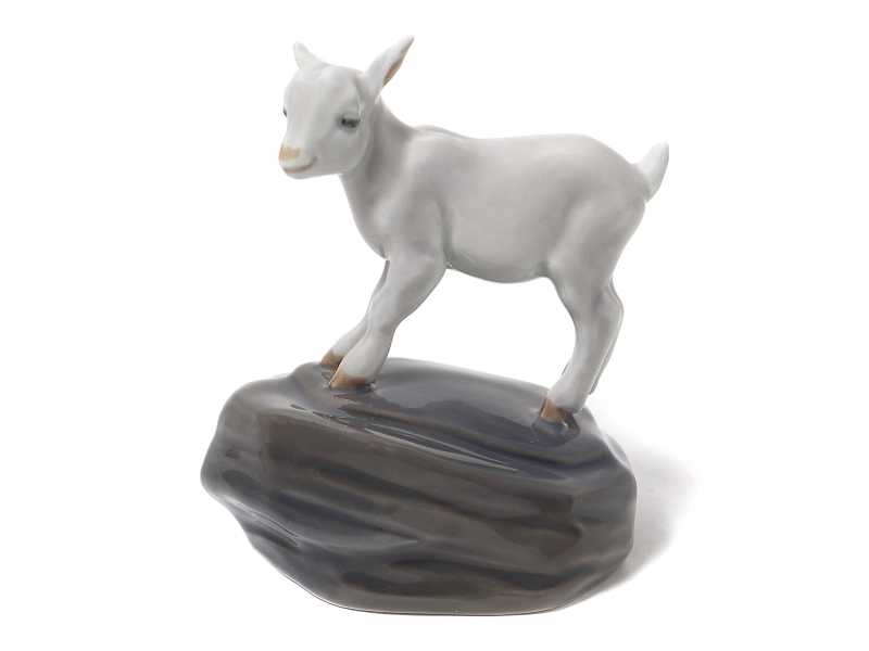 Фарфоровая фигура (статуэтка) "Козленок на скале". Ручная подглазурная роспись.