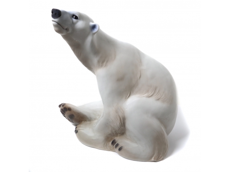 Фигура производилась также после объединения фабрик Royal Copenhagen и Bing & Grondahl (1985-1989) под брендом Royal Copenhagen, номер модели - 442. ======================================= Large porcelain figurine "White polar bear". Hand-painted underglaze.