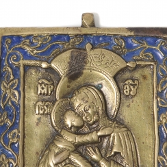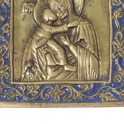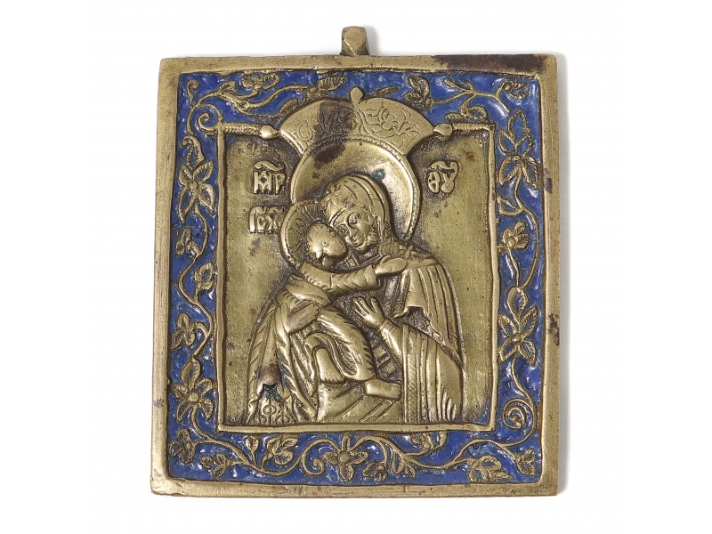 Литая икона "Пресвятая Богородица Владимирская". Бронза, эмаль.