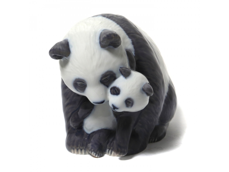 Фарфоровая фигура (статуэтка) "Панда с детёнышем" (Мама с ребенком). Ручная подглазурная роспись.