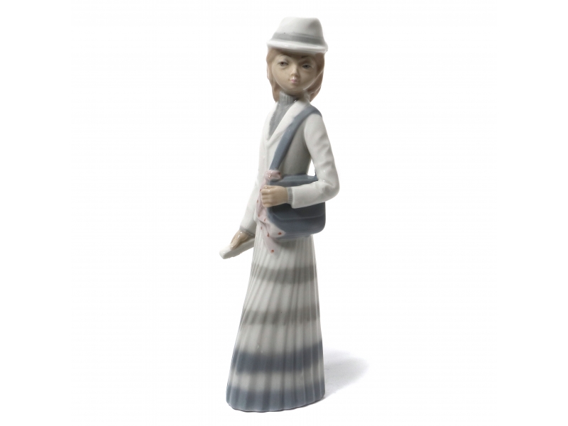 641378 - Фарфоровая фигура (статуэтка) "Девушка в шляпе и с сумкой через плечо". Casades