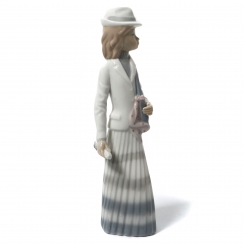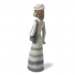Фарфоровая фигура (статуэтка) "Девушка в шляпе и с сумкой через плечо".