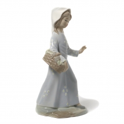 Фарфоровая фигура (статуэтка) "Девушка с корзиной (С виноградника)". Ручная подглазурная роспись.