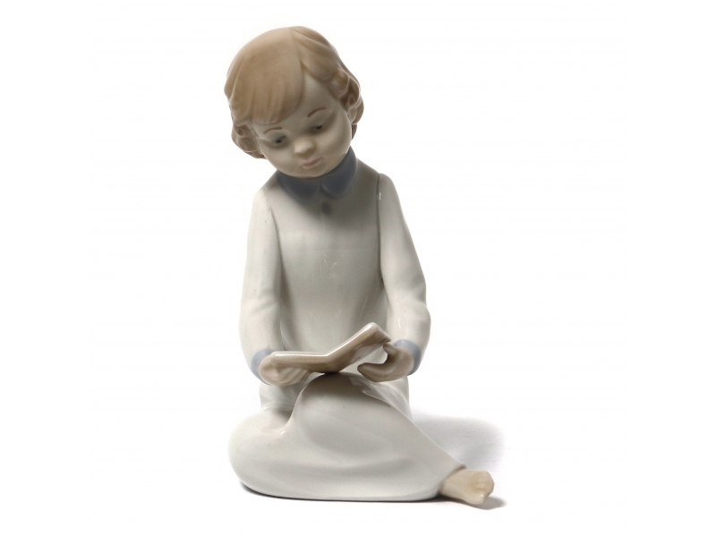 Фарфоровая фигура (статуэтка) "Мальчик с книгой". Ручная подглазурная роспись.