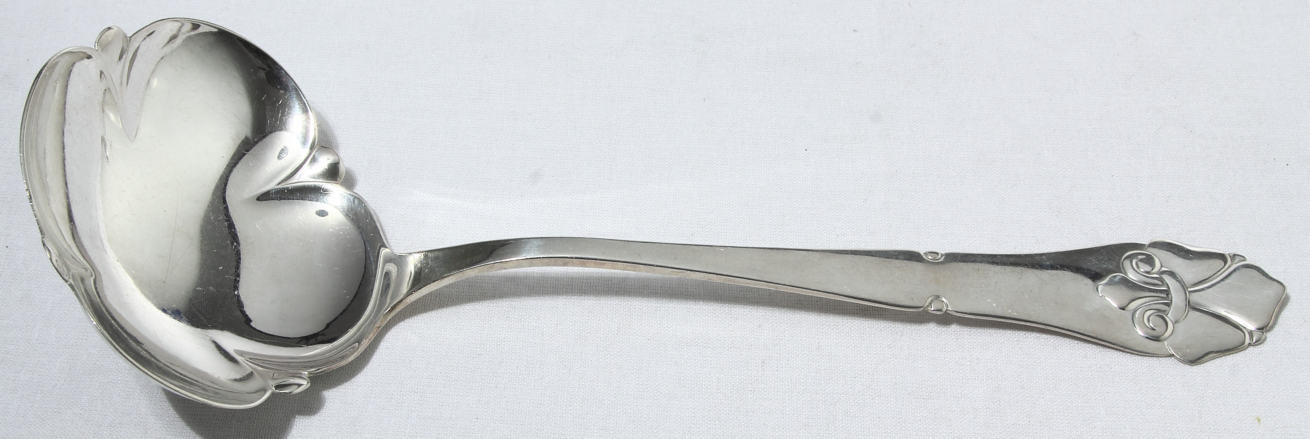 В данном лоте предлагается серебряная ложка-половник, выполненная в дизайне "Лилия".