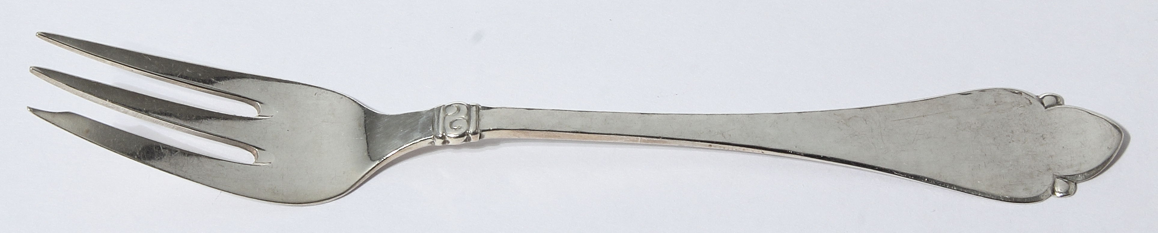 Датское пробирное клеймо 1931 года для серебряных изделий с изображением трех башен,под которыми размещены две последние цифры года клеймения. С 1608 по 1893 год такое клеймоставилось только на изделиях, произведенных в Копенгагене. С 1893 года это клеймо стало датскимобщенациональным клеймом, гарантирующим содержание серебра в клейменом изделии не ниже826/1000 (826 пробы), и использовалось до 1977 года.ядом с «Тремя башнями» располагается клеймо в виде инициалов начальника пробирной палаты(Stadtsguardien) времени клеймения. На данном изделии это «HCF» Christian F. Heise, руководительпробирной палаты Дании с 1904 по 1932 год.