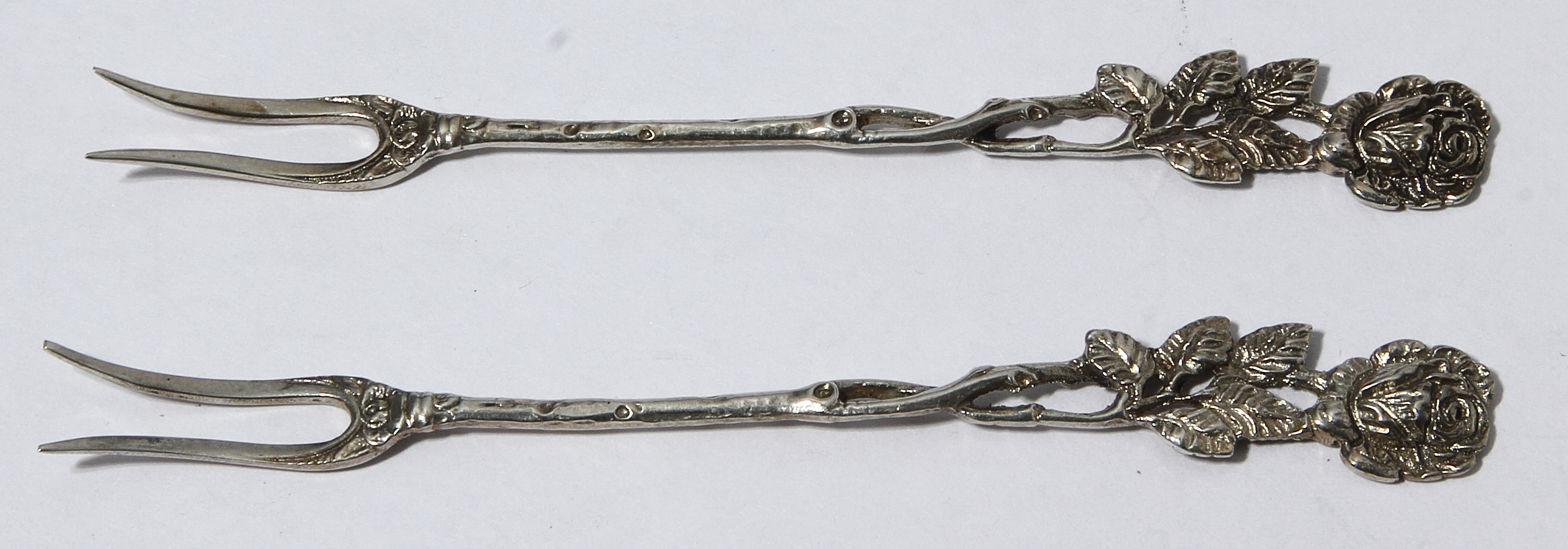 В данном лоте предлагаются две серебряные вилочки для канапе, выполненные в дизайне