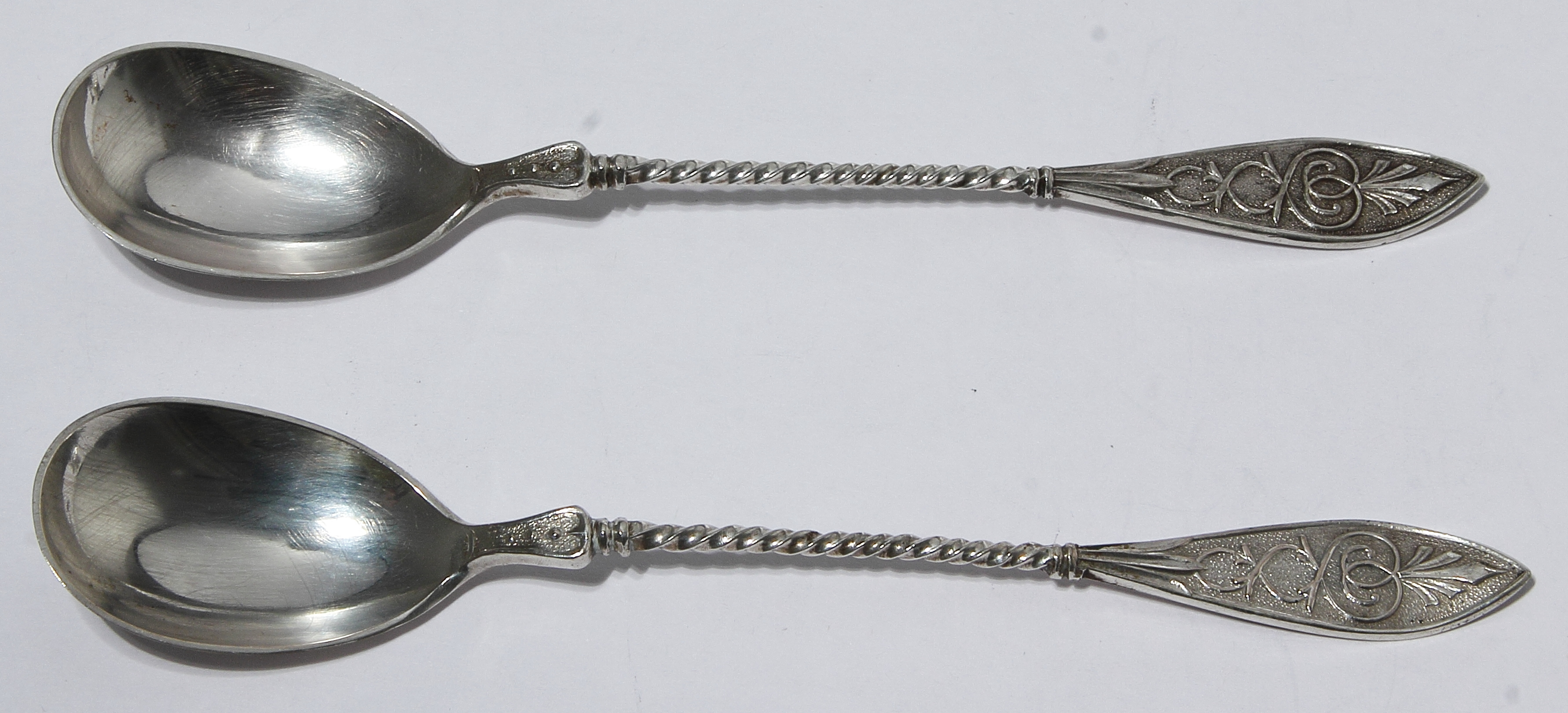 В данном лоте предлагаются две старинные серебряные чайные ложки.